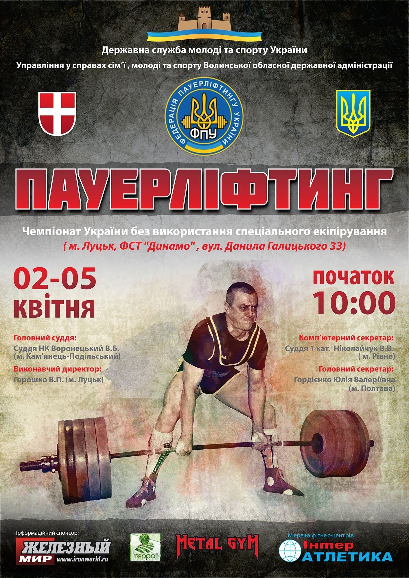 Пауерліфтери зі всієї України змагатимуться під час чемпіонату з пауерліфтингу, що триватиме з 2-ого до 5-ого квітня у Луцьку.