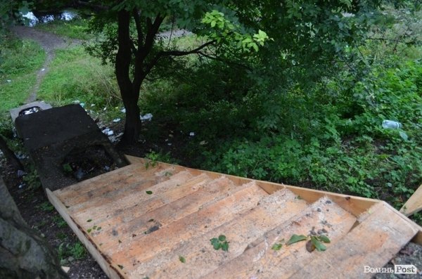Таким чином, або потрапити від річки до вулиці Ветеранів, тепер доведеться піднятися сходами і обійти архів. Коли дерев’яні сходи остаточно встановлять, будівельники закриють прохід через майданчик.