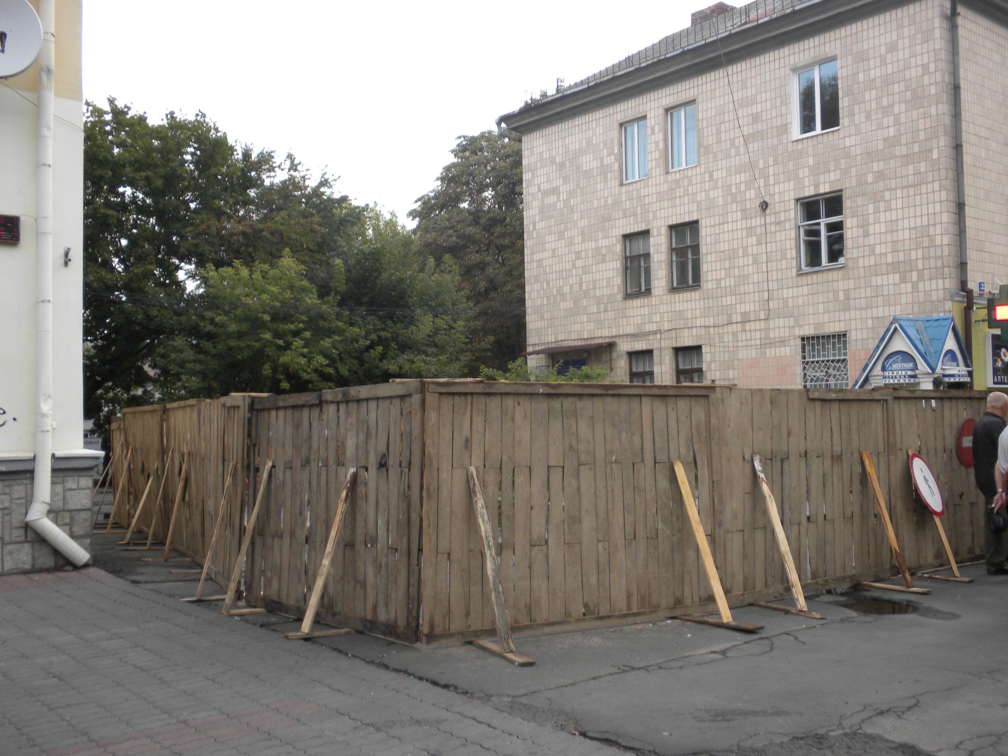 Бригада «Луцьктепла», втелющивши між двома будинками на проспекті Волі паркан, хотіла перенести трубу, щоб уможливити зведення торгового павільйону та критої зупинки транспорту на цьому місці.