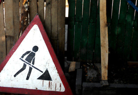Поряд зі знаками, які залишили по собі робітники, люди наклеїли на паркан листівку з текстом «Тут розпочинається незаконне будівництво».