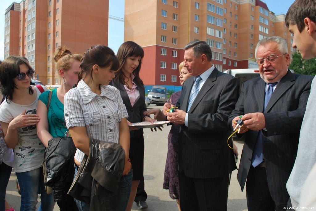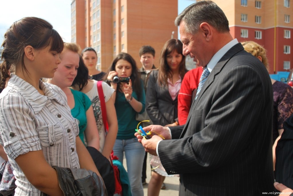 Голова ОДА Борис Клімчук і мер Луцька Микола Романюк вручили ключі від двох квартир дітям-сиротам. Подія відбулася 4-ого червня на вулиці Кравчука.