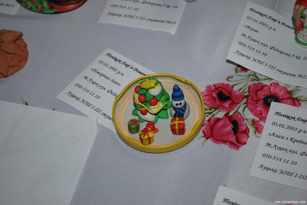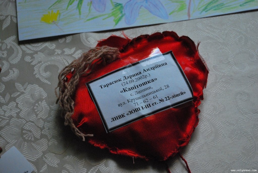 Так, перше місце отримала учениця луцької ЗОШ №25 Дарина Поліщук за роботу «Муза» - ляльку, виготовлену з полімерної глини. А гран-прі здобула вихованка Волинського обласного молодіжного центру реабілітації інвалідів з дитинства «Джерело життя» Марія Панчук. Роботою, яка принесла дівчині перемогу, має назву «Чай, кава» і виконана художньою вишивкою.