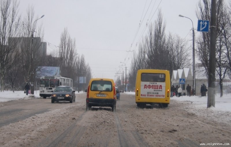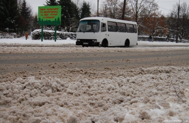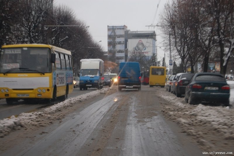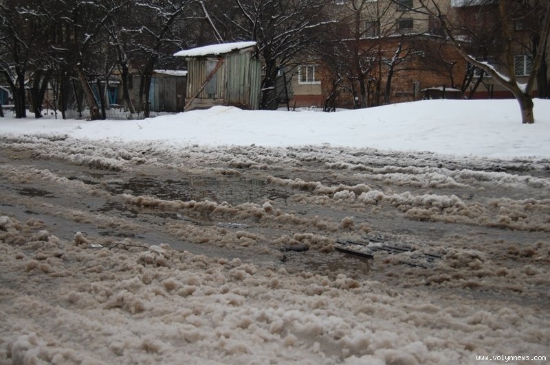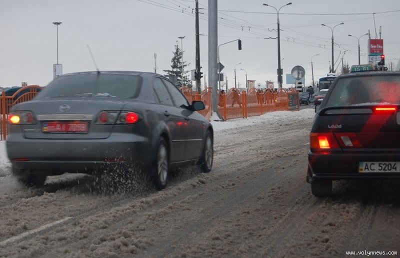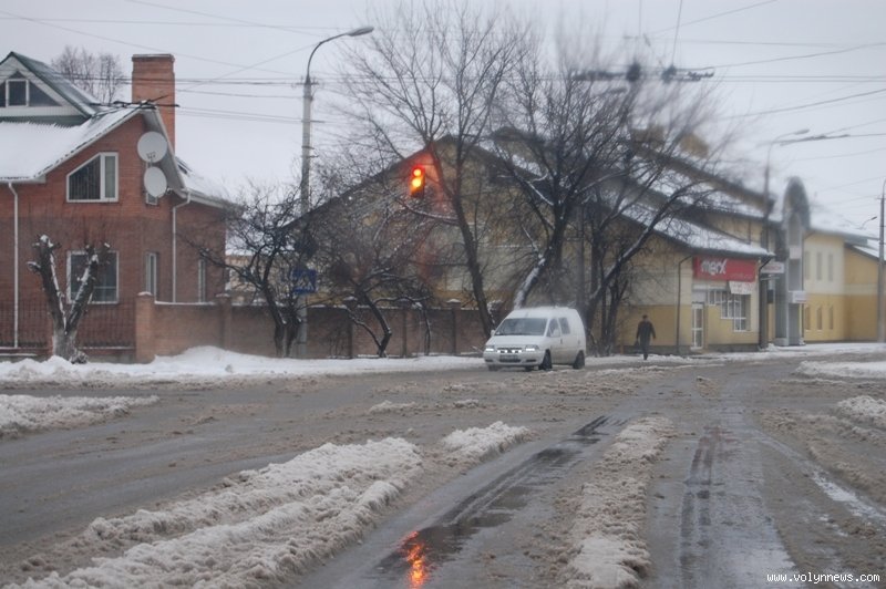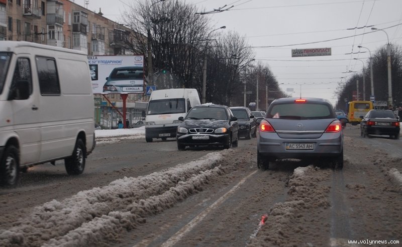 В другій половині дня на проспектах Перемоги, Грушевського, вулицях Рівненській, Відродження, Гордіюк, Соборності, Конякіна, Ковельській та Глушець сніг на проїжджій частині перетворився на рідку «кашу», якою машини на швидкості обляпували перехожих.