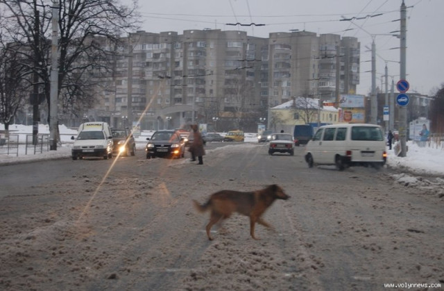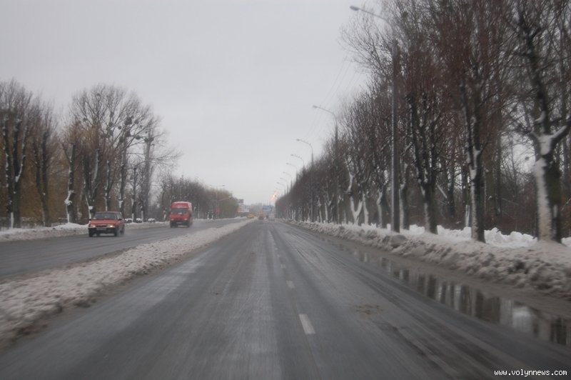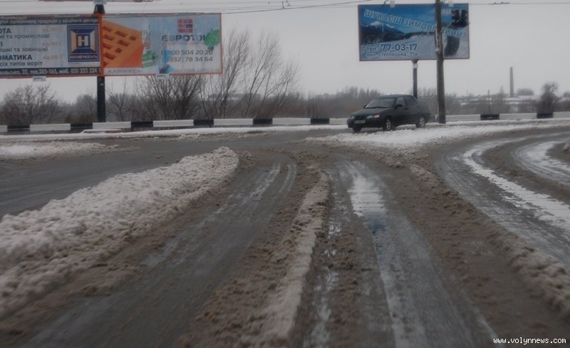 У Луцьку дороги розчищали …тепло і колеса автомобілів