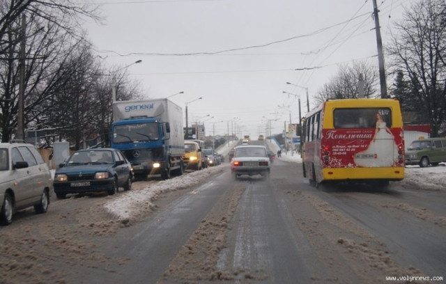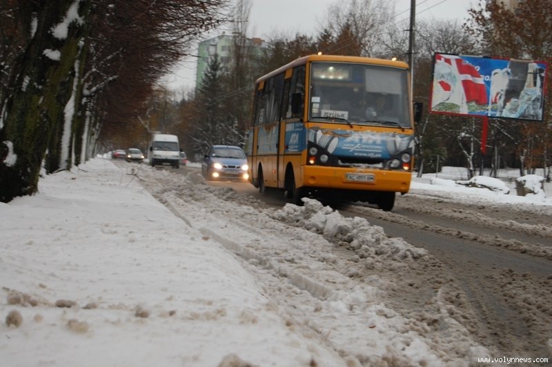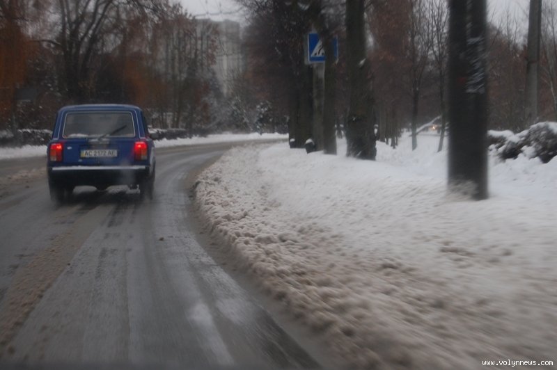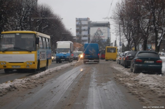 Окрім того, на багатьох ділянках луцьких доріг складалося враження, що сніг просто розтанув або ж був розсунутий потоком автотранспорту.
