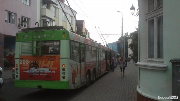 Від готелю «Україна» аж до обласного театру ляльок «вишикувалися» приблизно два десятки тролейбусів.