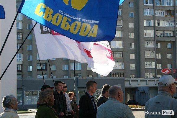 У Луцьку на мітингу ВО «Свобода» та ВО «Батьківщина» закликали розслідувати вбивства українських моряків в Азовському морі, інформує ВолиньPost.