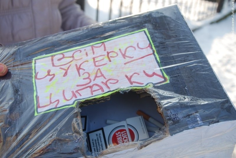 У Луцьку активісти Православного юнацького клубу 19 грудня обмінювали ласощі на цигарки у рамках акції «За здорове життя».