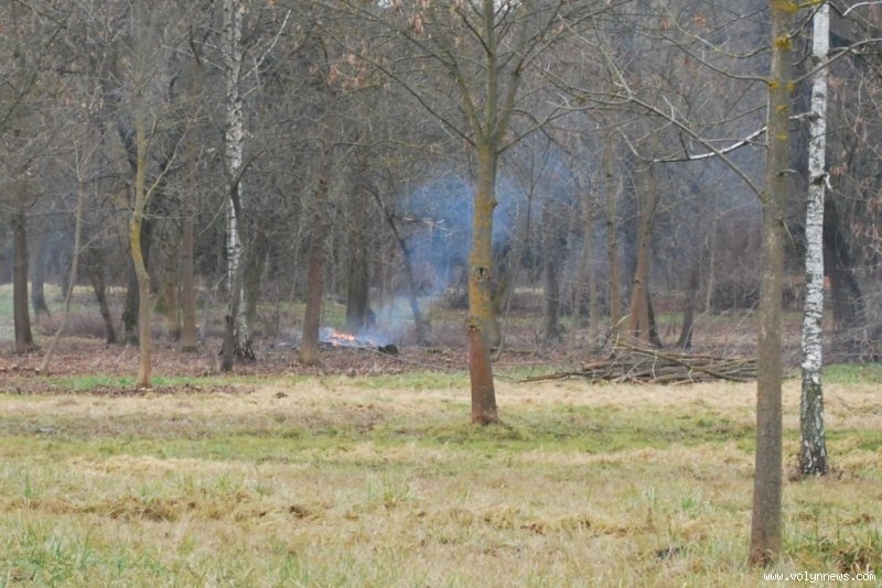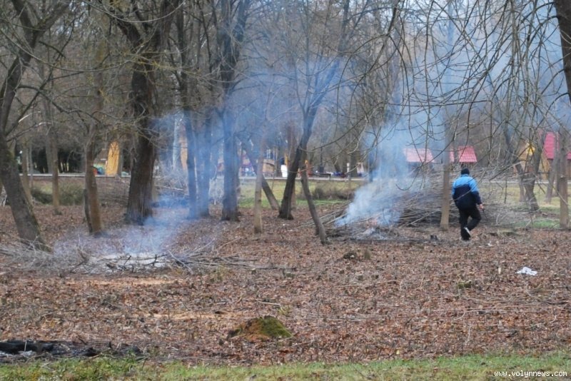 Попри заборону луцької мерії спалювати тверді побутові відходи, опале листя, стерню та залишки сухої рослинності на території міста, у центральному парку таки розводять багаття із сухого гілля.