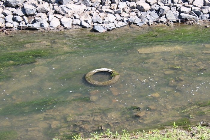 Робітники розчищають русло річки, з якого виймають на беріг різний мотлох. Зокрема, це й автомобільні шини, пляшки, цегла, дошки, поліетиленові кульки тощо.