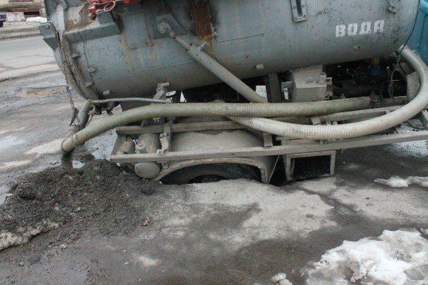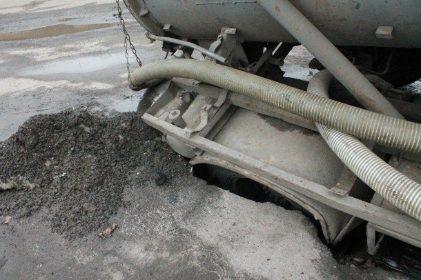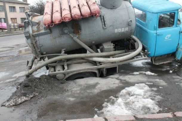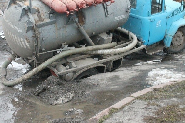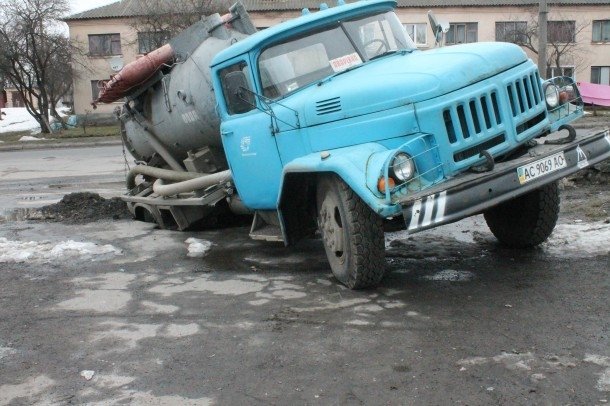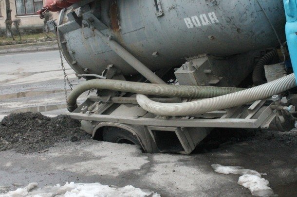 Через вибоїни на дорогах у Луцьку під землю провалився автомобіль, яким відкачують воду, - повідомляє «Під прицілом».