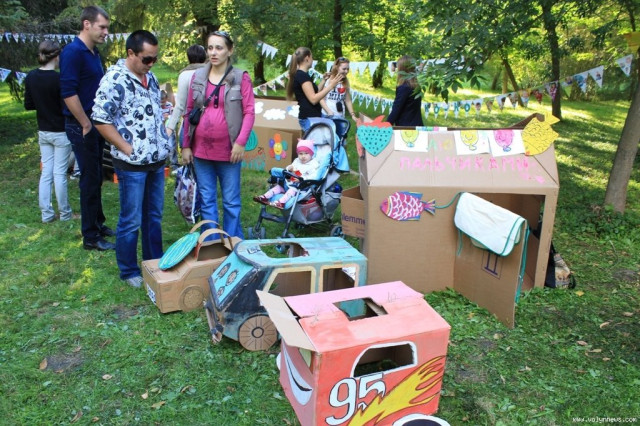 Для найменшеньких організатори побудували лабіринт, будиночки і навіть автомобілі із використаних картонних коробок.