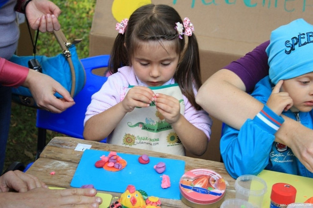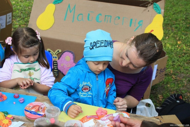 Також усі охочі могли взяти участь у цікавих майстер-класах, де малечу вчили ліпити фігурки із солоного тіста, малювати, розписувати еко-торбинки та іграшки, робити панно з круп, виготовляти іграшки з екологічно чистих і безпечних матеріалів (фетру, сіна, вовни, помпонів) та навіть прати.