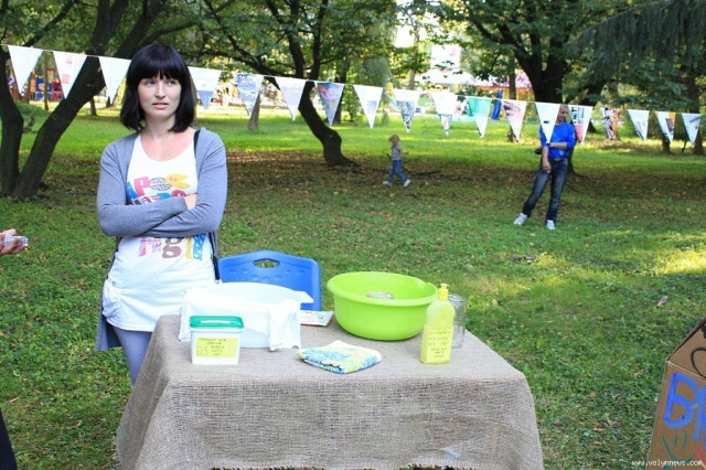 Так, на «хімічному» майстер-класі дітей учили прати одяг та мити посуд, а матусь – правильно вибирати миючі засоби (ті, що не містять фосфатів, хлору та поверхнево-активних речовин).