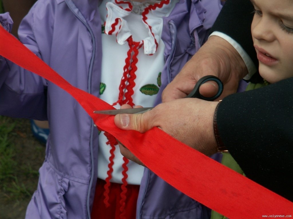 Опісля саджання дерев міський голова символічно перерізав стрічку перед меморіальною дошкою.