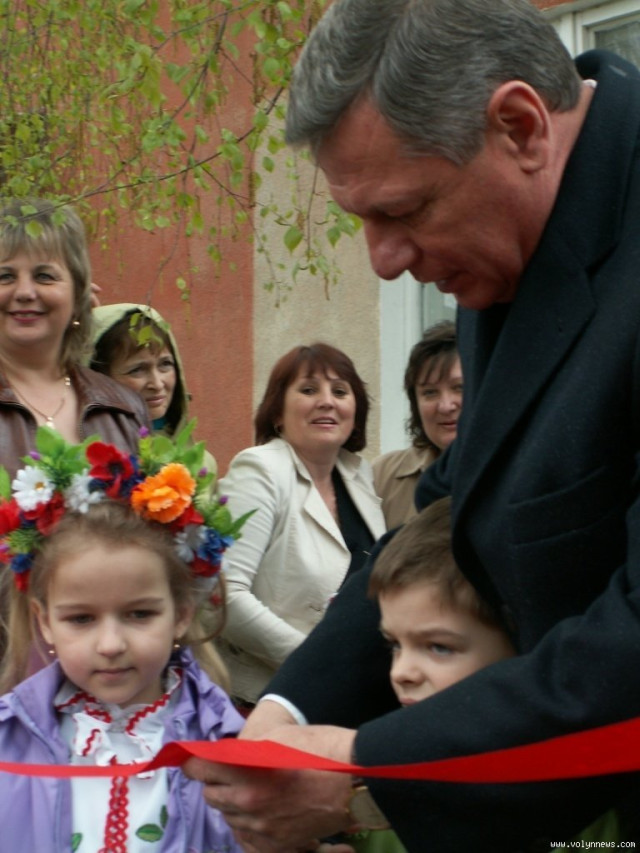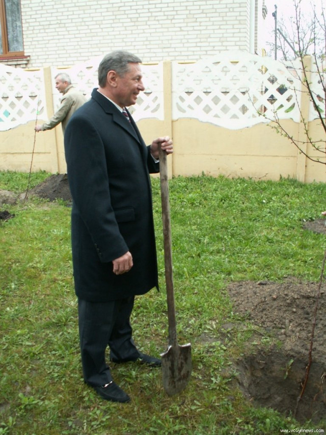 Молодець мер, попозував з лопатою.А фізично змушені працювати жінки,що окрім догляду за дітьми розкидали чорнозем по території,копали лунки і т.д.Кілька років тому дерева зрізали,а тепер насаджують.Краще б профінансували ремонт зовнішнього фасаду садка.