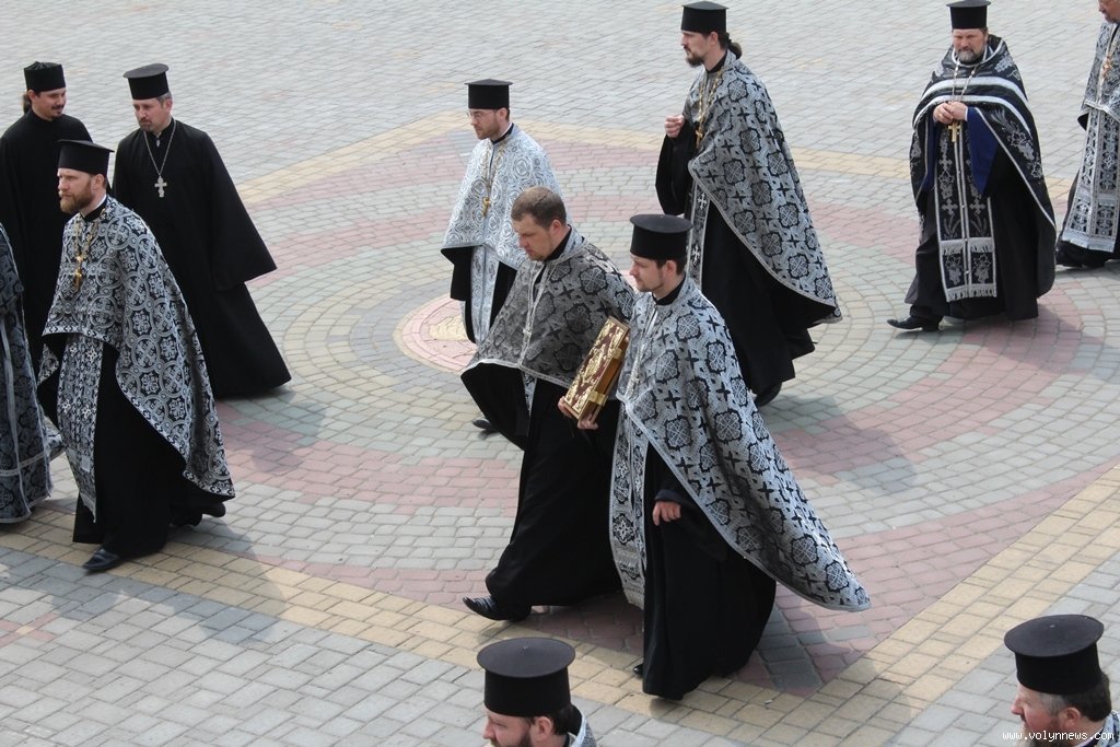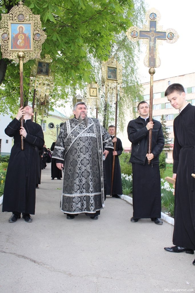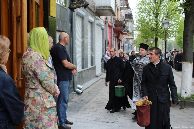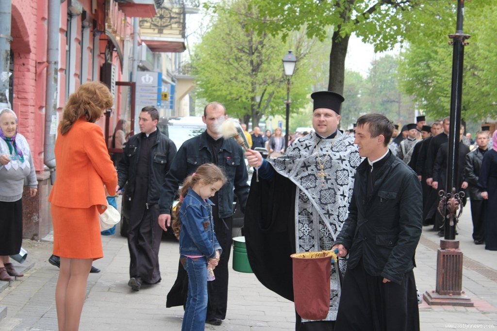 Із владикою, зачитуючи уривки з Біблії, співслужило й місцеве духовенство, а участь у ході взяли ченці й черниці, викладачі та вихованці Волинської православної богословської академії. Так, двоє священників кропили святою водою лучан, які зупинялися на вулицях, якими проходили церковники. Ще двоє священнослужителів збирали пожертви.