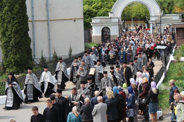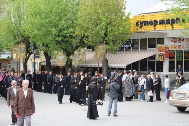 Страсна хресна хода розпочалася приблизно о 12 годині і рушила від Хрестовоздвиженського храму вулицею Лесі Українки до Свято-Троїцького собору, де після цієї відправи служитимуть Вечірню з винесенням плащаниці.