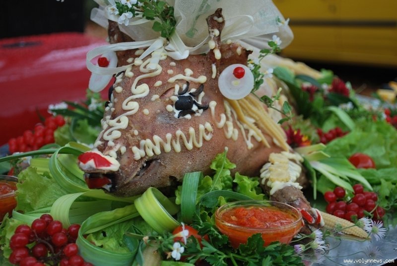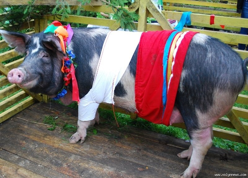 Близько десятка учасників привезли на фестиваль з фермерських господарств Волині живих свиней та поросят. Тварин закрили у вольєри, на деяких нарядили у вінки, почепили краватки-метелики та стрічки – проходив традиційний для цього заходу конкурс краси серед свиней. Переможницею змагання визнали свиню «Конвалія» у вінку фермерського господарства «Аміла» з села Радовичі Турійського району.