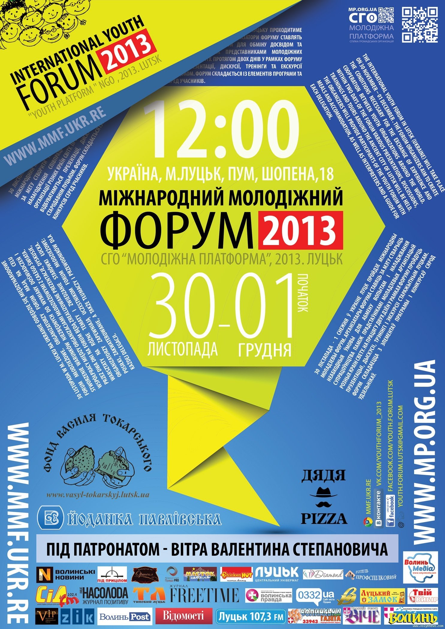Нагадаємо, перший Міжнародний молодіжний форум у Луцьку відбуватиметься 30 листопада та 1 грудня.