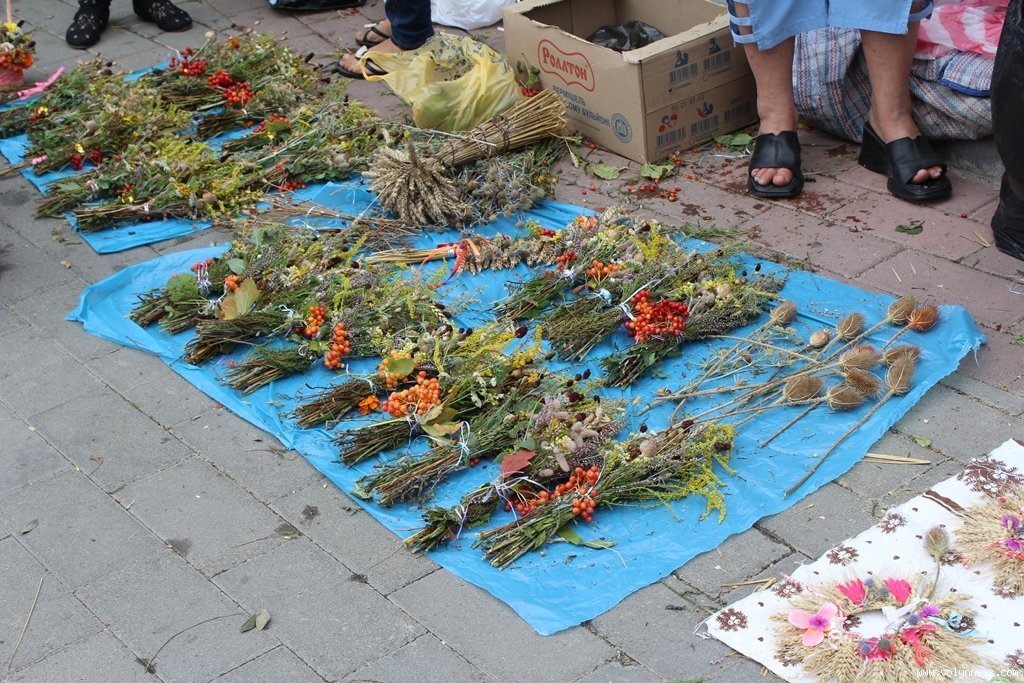 Поблизу собору можна було придбати все те, з чим асоціюється свято: яблука, мед, букети-маковійчики. За півлітра смачного меду правили 45-50 гривень. За гречаний трішки більше – 50 гривень.