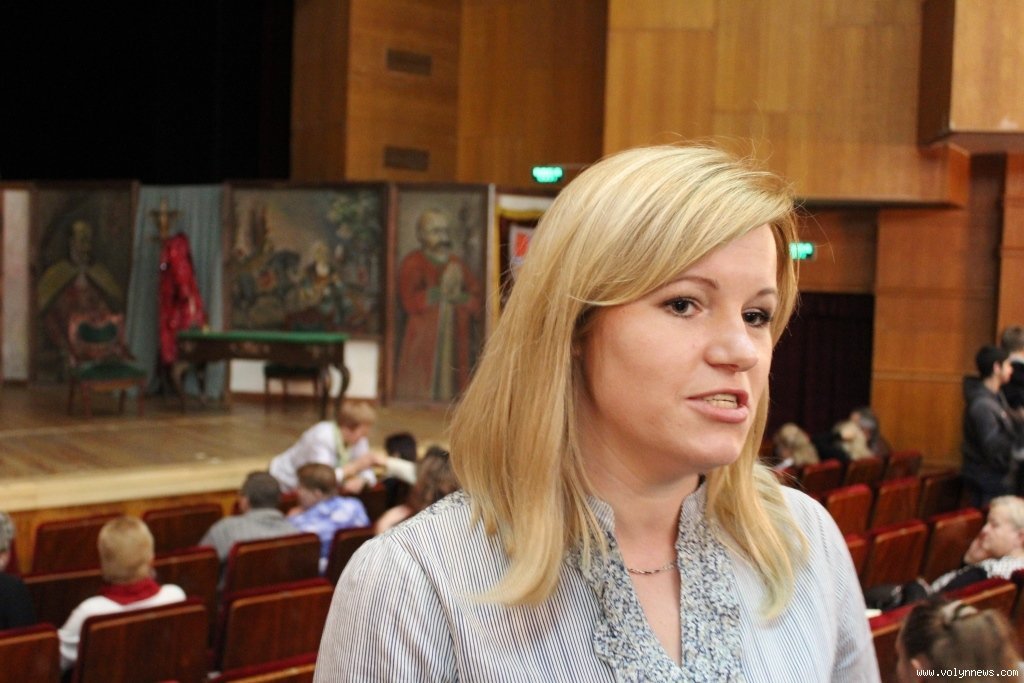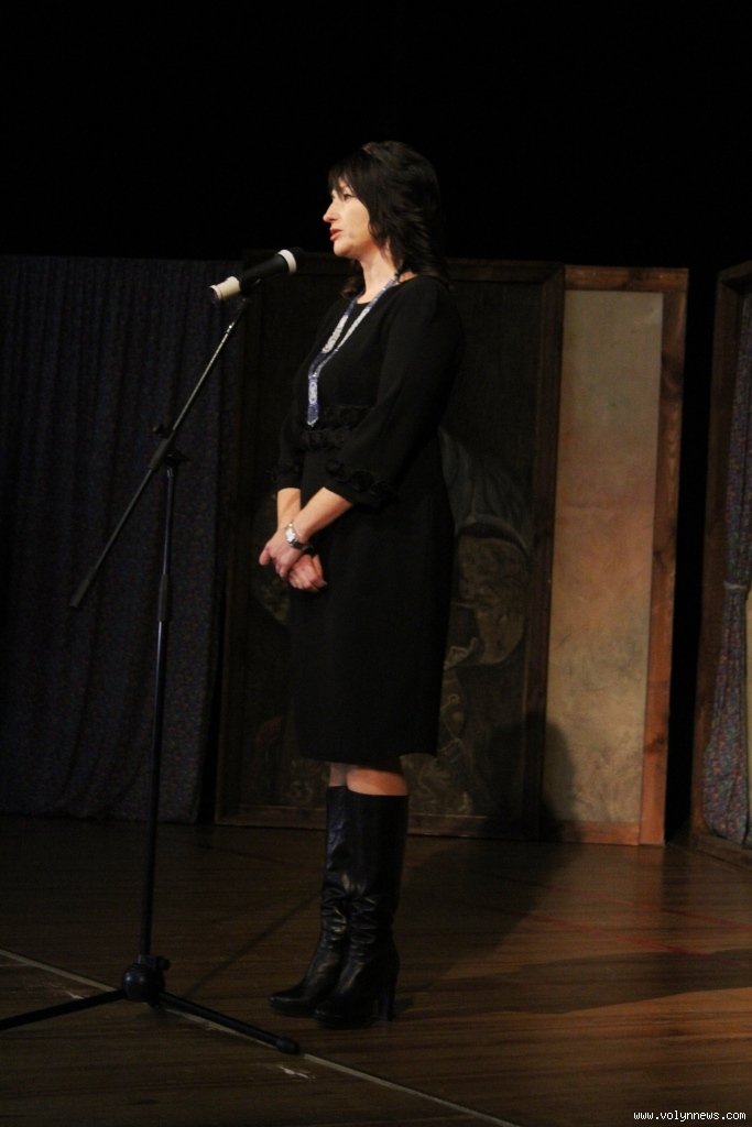 «Це свято, яке відзначається в Україні за православним календарем – в цей день ми вшановуємо пам'ять преподобного Нестора Літописця, який є послідовником Кирила та Мефодія. Сьогодні дуже приємно побувати у нашому Волинському академічному обласному українському музично-драматичному театрі імені Т.Г.Шевченка, де зібралося так багато людей, щоб вшанувати нашу українську мову. Я, згідно з дорученням жінок нашої організації, хочу висловити велику вдячність народному депутату України Ігорю Петровичу Палиці за те, що він небайдужий до української мови та організував таке чудове свято для лучан. Всім відомо, що найбільший скарб для народу - це його мова. Ми розуміємо – якщо занепадає мова, зникає нація. Ми гордимося тим, що спілкуємося українською мовою, що у нас є такі високі твори, написані визначними письменниками. Це - Іван Франко, Леся Українка, Тарас Шевченко, Іван Котляревський та інші, які завжди відстоювали своєю творчістю тільки свою рідну мову. Мова – це те, що найдорожче і найвеличніше, це ніби та скарбничка, в яку складає народ свій досвід, своє життя, свій розум для того, щоб пізніше все це могли пізнати майбутні покоління», - розповіла голова Волинської обласної організації Всеукраїнського Жіночого товариства імені Олени Теліги Євгенія Романюк.