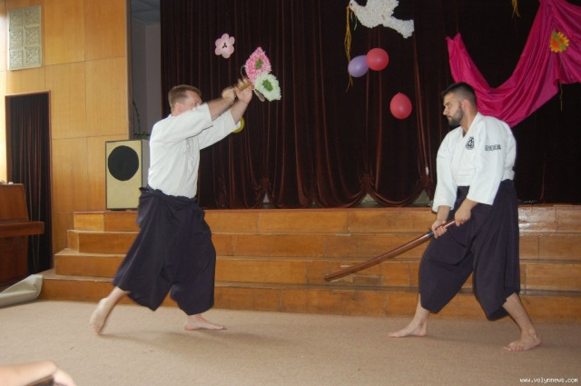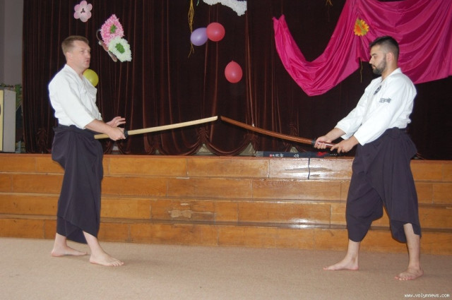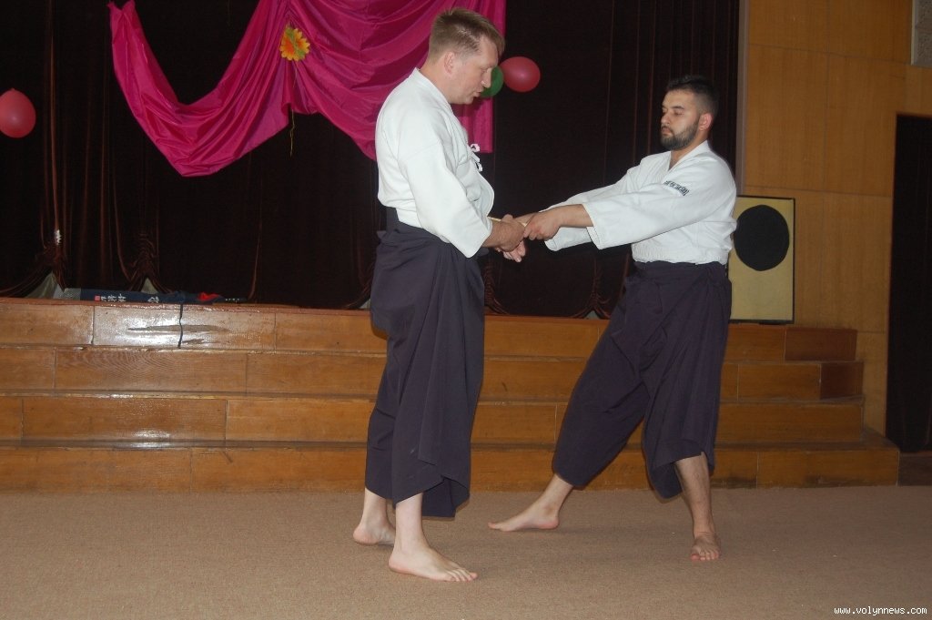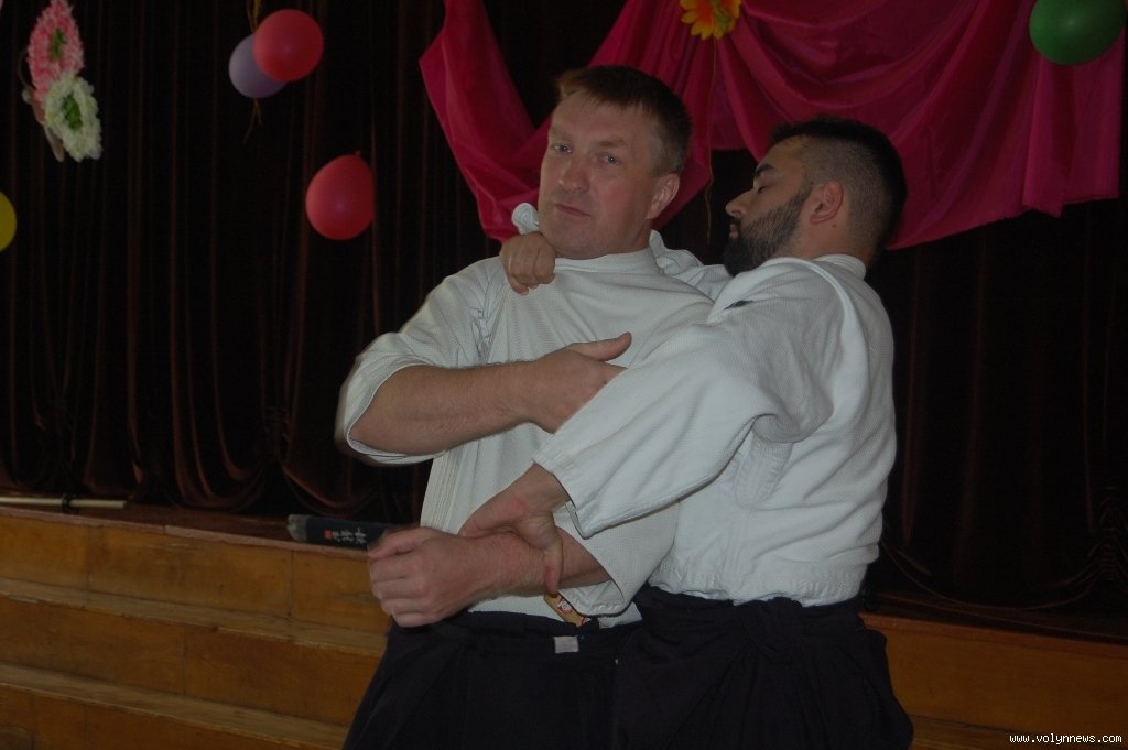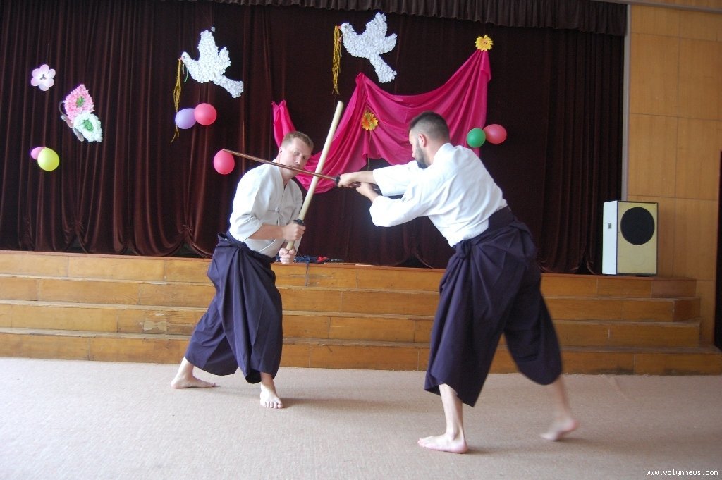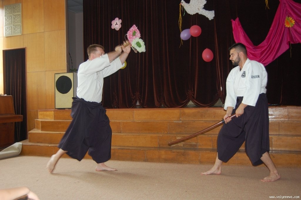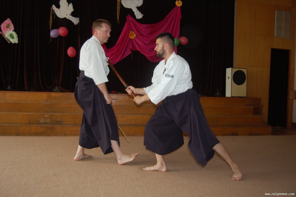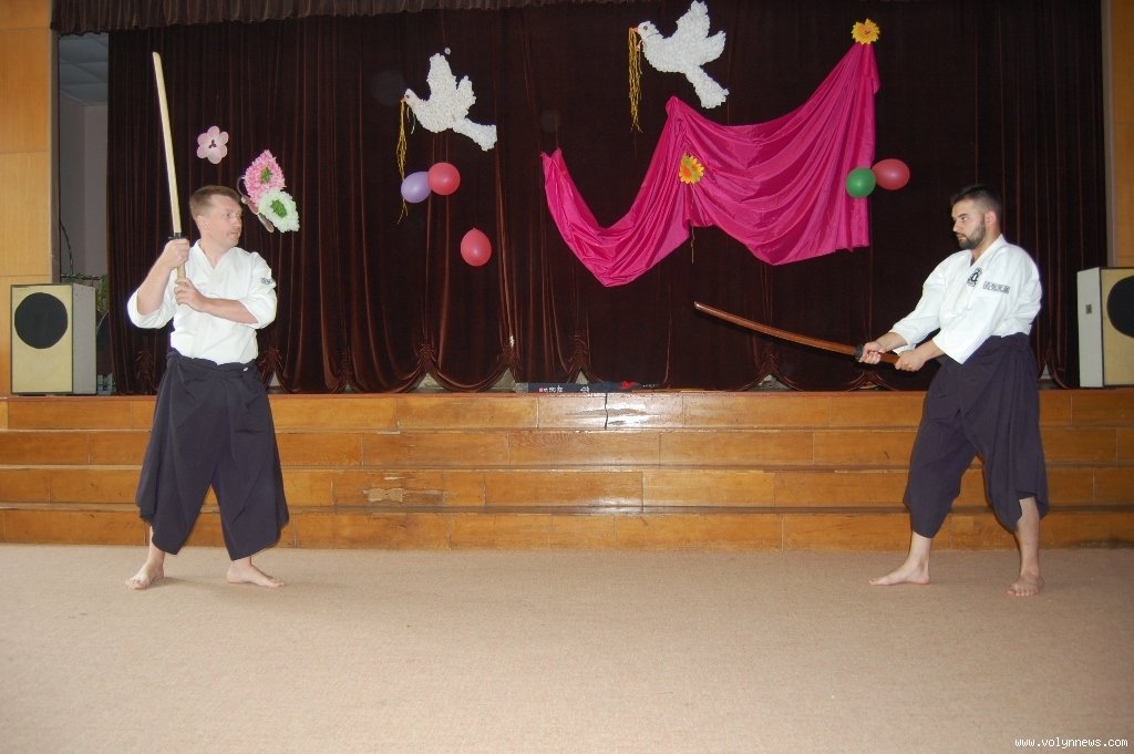 Одним із учасників показового виступу для дітей став керівник Волинської обласної молодіжної громадської організації «АЙКІ» Андрій Смірнов. Він показав малюкам копію та оригінал японського меча катани та те, як цю зброю використовувати. Окрім того, діти мали нагоду навчитися деяким прийомам самооборони, підґрунтям для якої стали східні бойові мистецтва.