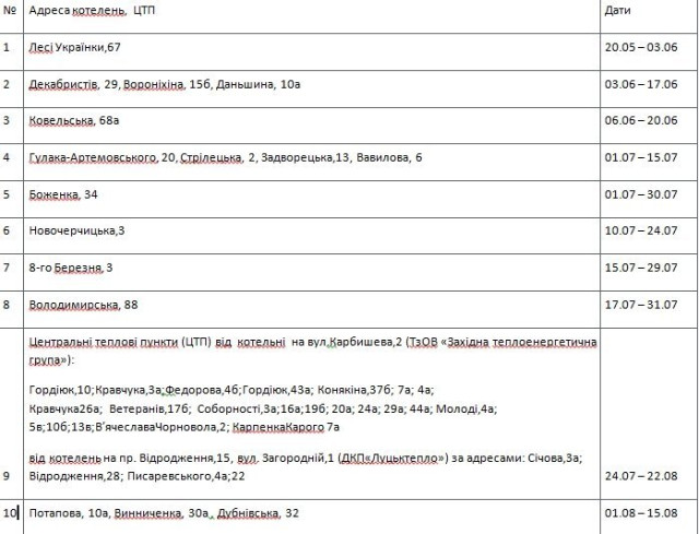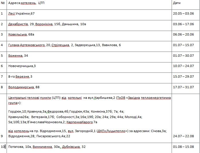 У Луцьку відключатимуть гарячу воду. ГРАФІК