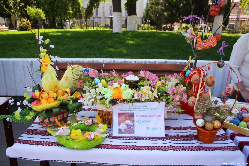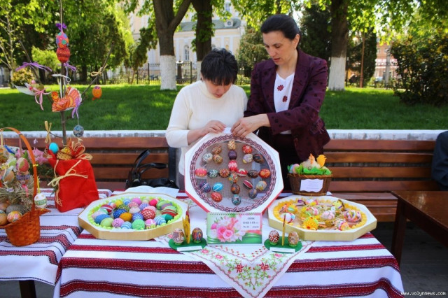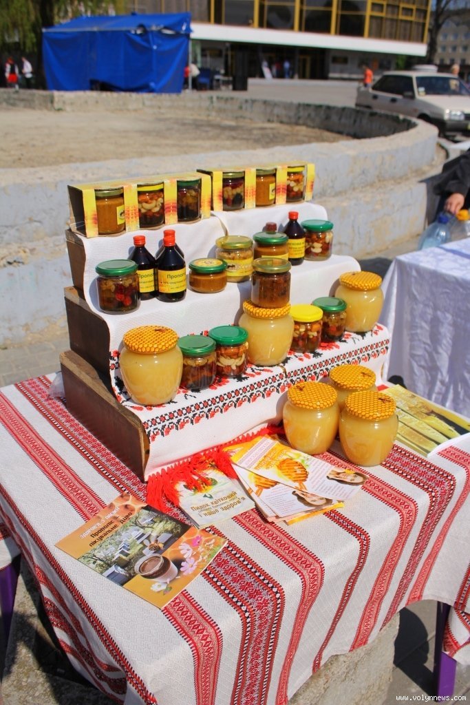 На виставці представлені питні меди (апіфіто-бальзам, медівка тощо) та бджолопродукція від членів братства бджолярів землі Волинської «Ройовий стан», а також писанки та крашанки, хенд мейд, кошики та горщики, сорочки й чимало іншого від 52 майстрів декоративно-прикладного мистецтва.