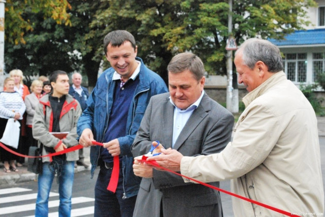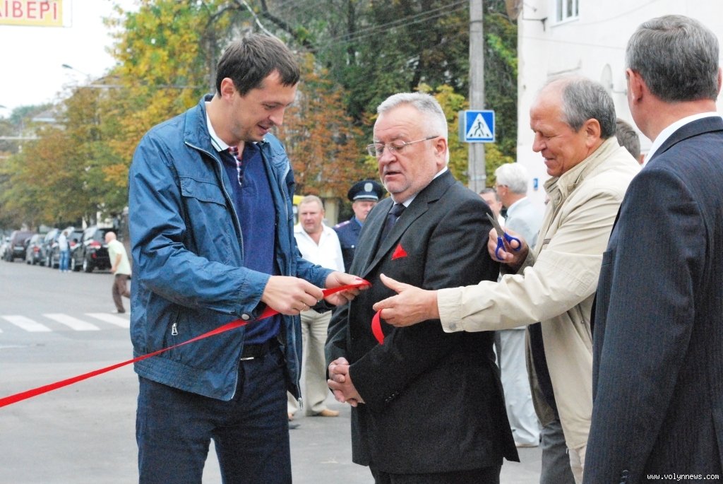 Символічну червону стрічку перерізали голова наглядової ради ЗАТ «Луцькавтодор» Юрій Ольховий, генеральний директор ПАТ «Луцьксантехмонтаж №536», компанії, що зокрема виконувала роботи, Ігор Чорнуха і його батько – колишній очільник цього підприємства, член виконкому Луцької міськради, Віктор Чорнуха.