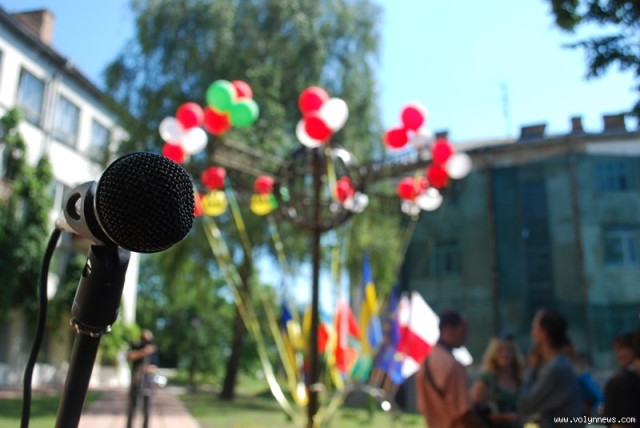 Перерізали стрічку офіційні делегації міст-побратимів. Подивитися на дійство зібралися декілька десятків лучан.