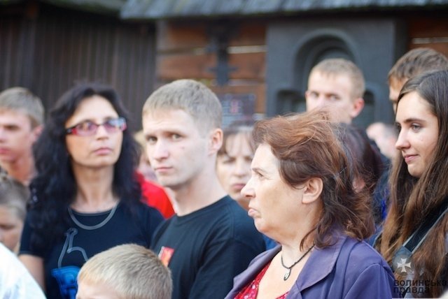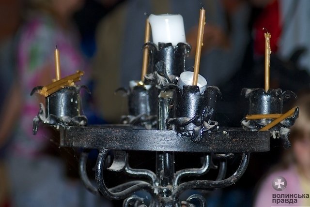 Потім присутні підійшли до входу у луцьке підземелля під костелом Петра і Павла. Понад 100 людей одночасно потрапити всередину просто не могли. Відомий «луцький кріт» та хранитель луцьких підземель Олег Виноградов дозволяв заходити усередину групам тільки по 25 чоловік. До того ж він, чомусь, забороняє там фотографувати і уважно пильнує за цим через цікаву і хитромудру систему дзеркал. Лучани стояли біля решіток коло костелу, як у черзі за ковбасою. Дехто працював ліктями. Люди стояли щільно, так їм хотілося потрапити до луцьких підземель.