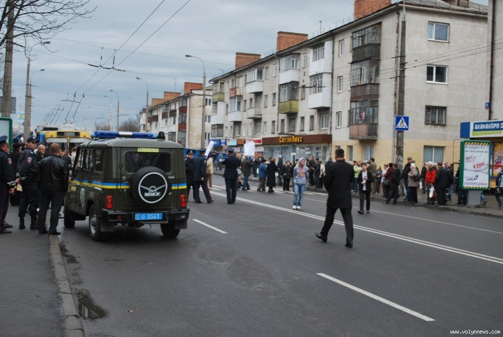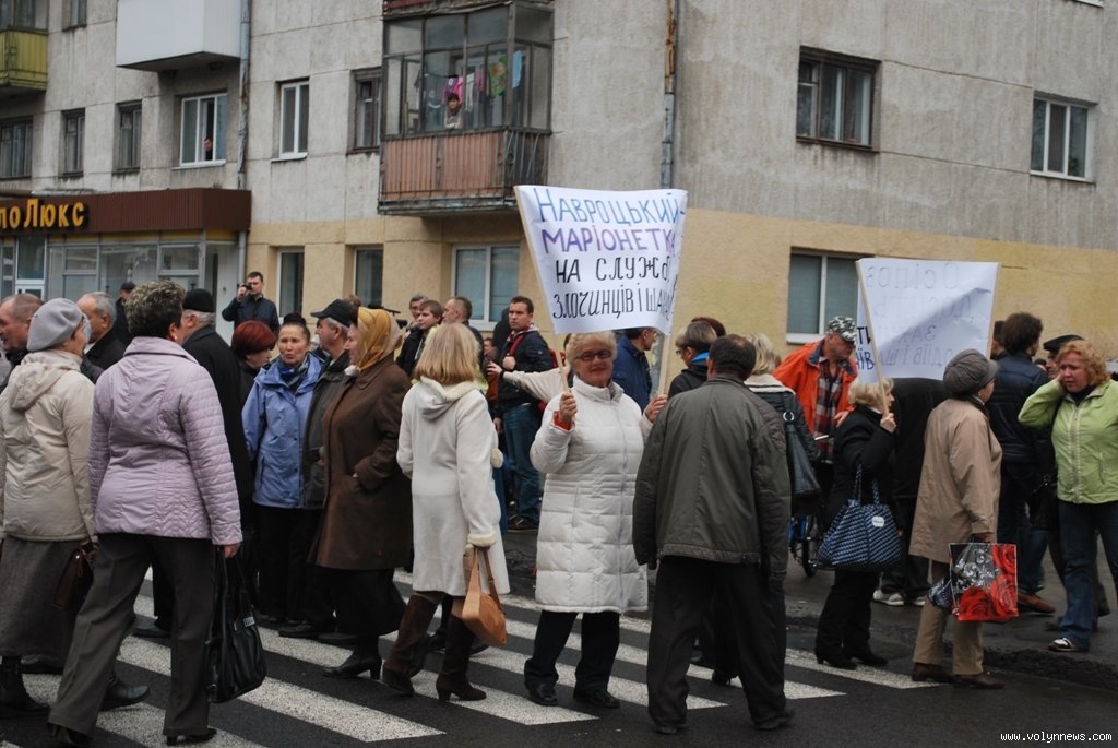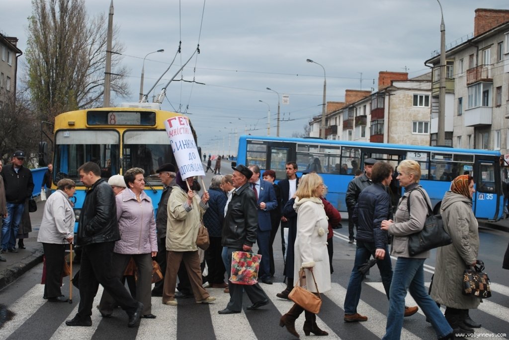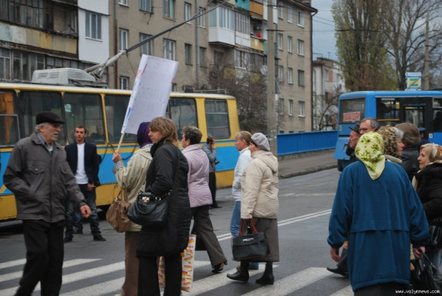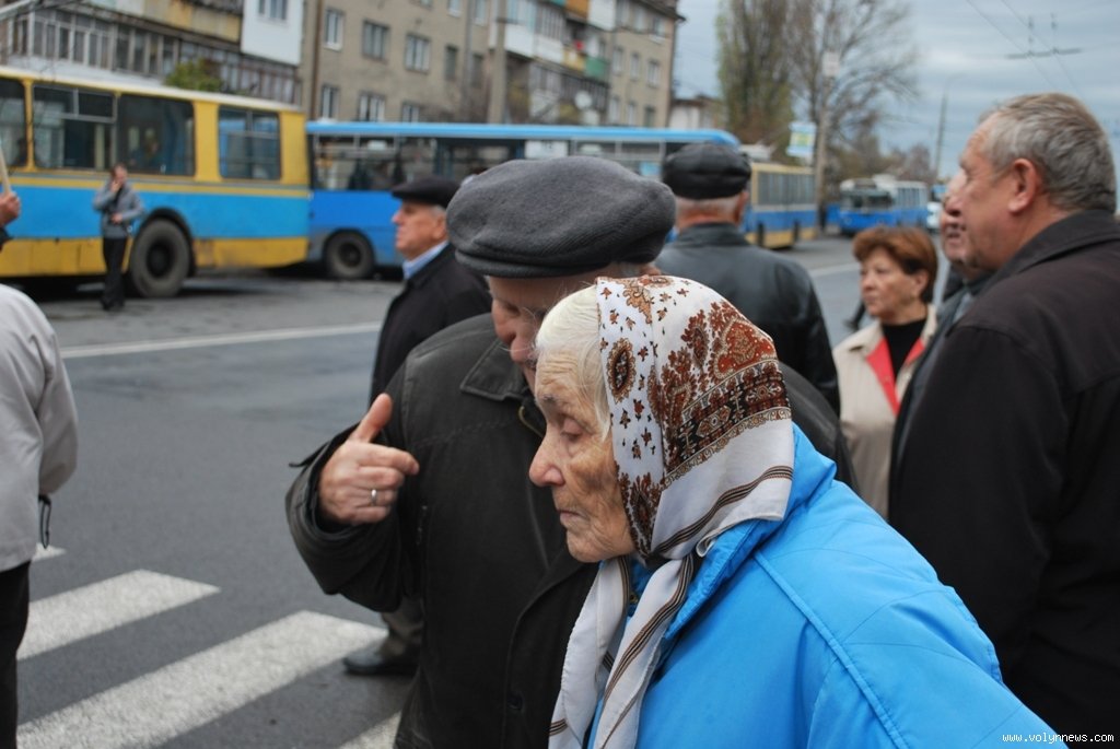 У Луцьку по проспекту Перемоги вкладники «Західінкомбанку» перекрили рух транспорту. Більшість мітингувальників - лучани пенсійного віку. Протестуючі вимагають, щоб до них під’їхав голова Волинської ОДА Борис Клімчук або прокурор області Андрій Парака.