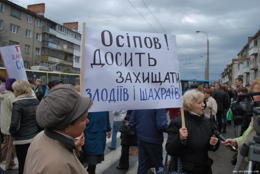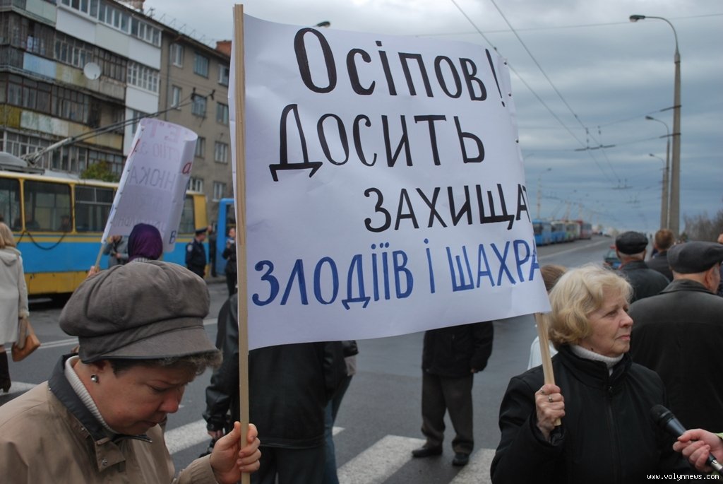 Одна з протестуючих, пенсіонерка Світлана Мальцева звинуватила депутата луцької міської ради Андрія Осіпова в тому, що він, буцімто, покриває злочинців.