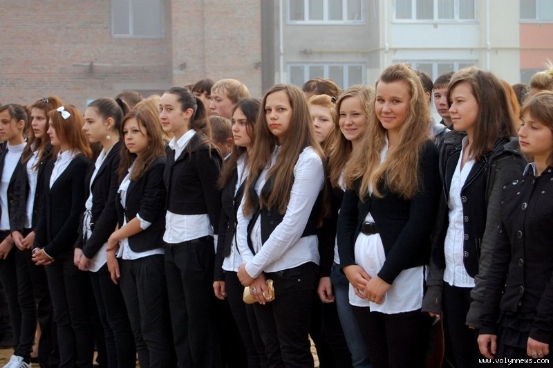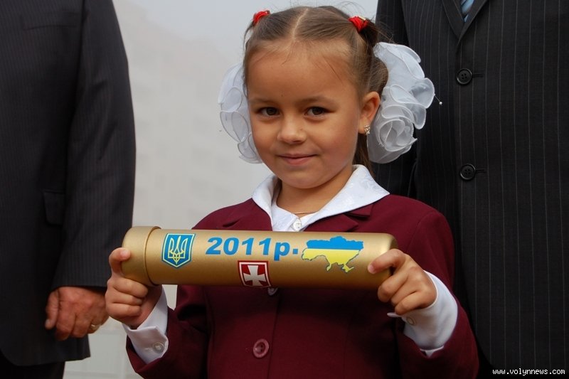 Чиновників піснями та віршами вітали учні з найближчих шкіл. Самі ж посадовці вітали лучан з «великим днем» та разом з другокласницею гімназії №21 Лідією Мартинюк заклали символічну капсулу у фундамент майбутньої школи.
