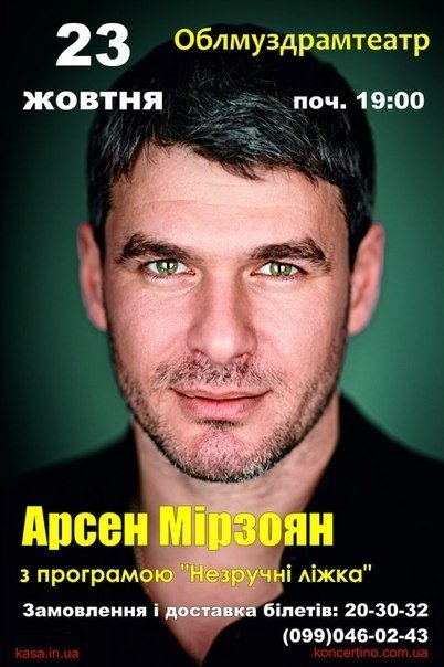 Арсен Мірзоян - український виконавець, автор усіх своїх пісень, учасник шоу «Голос країни» 23 жовтня виступить у Луцьку з новою програмою «Незручні ліжка!»
