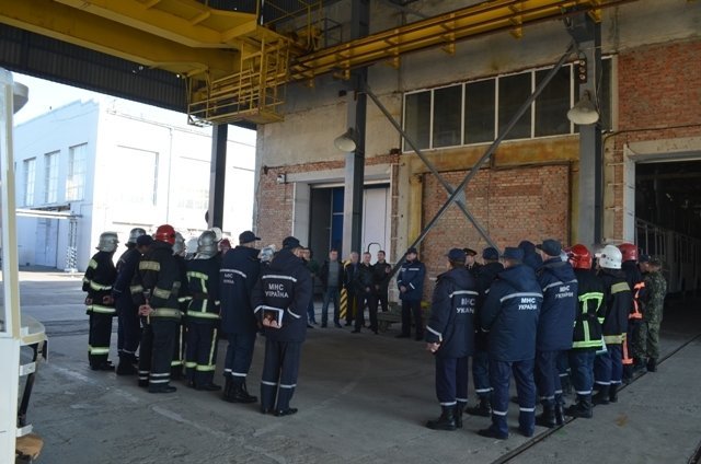 За ходом навчань та діями формувань спостерігали директор заводу Володимир Гунчик та начальник управління ДСНС області генерал-майор служби цивільного захисту Володимир Грушовінчук.