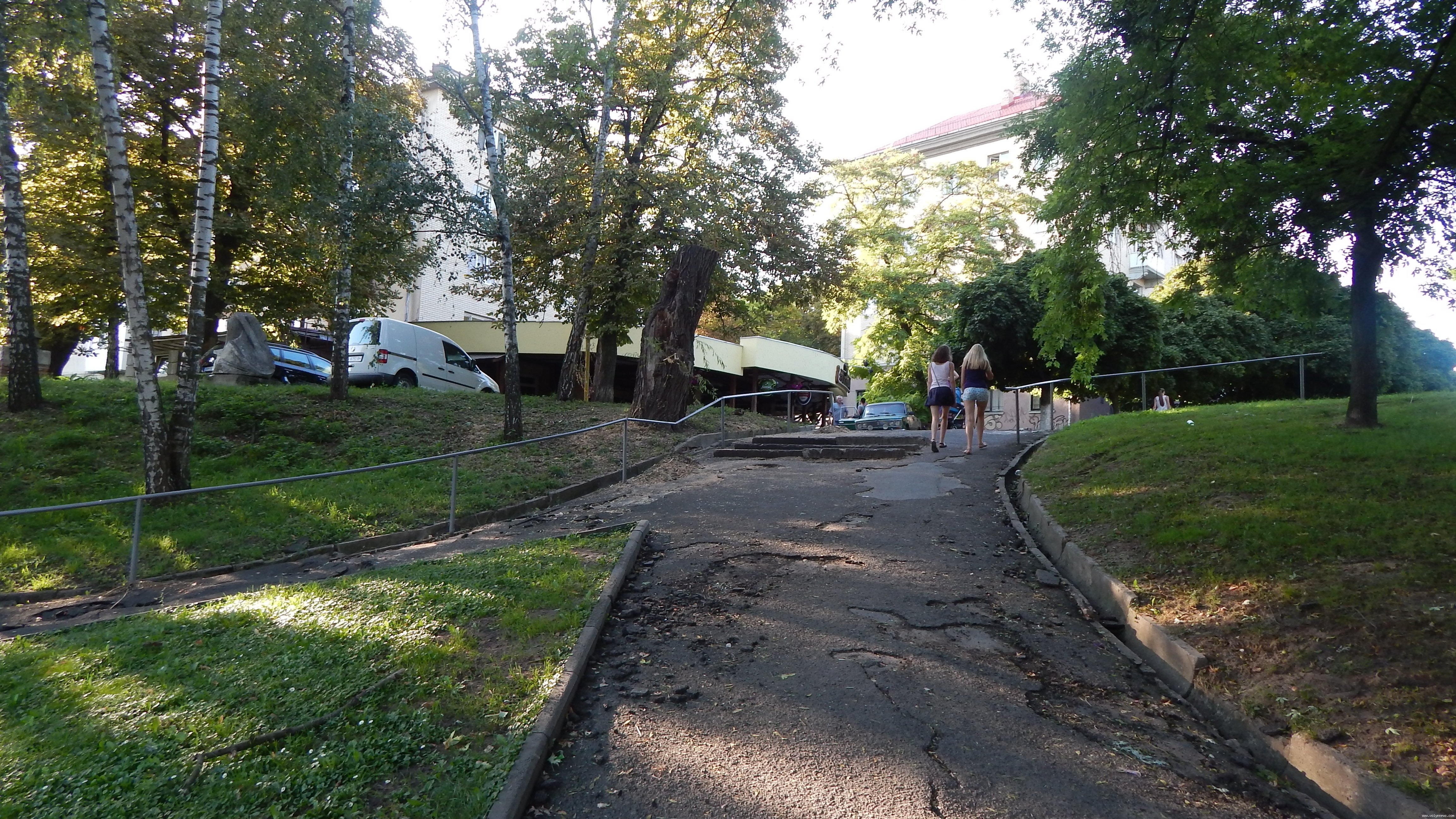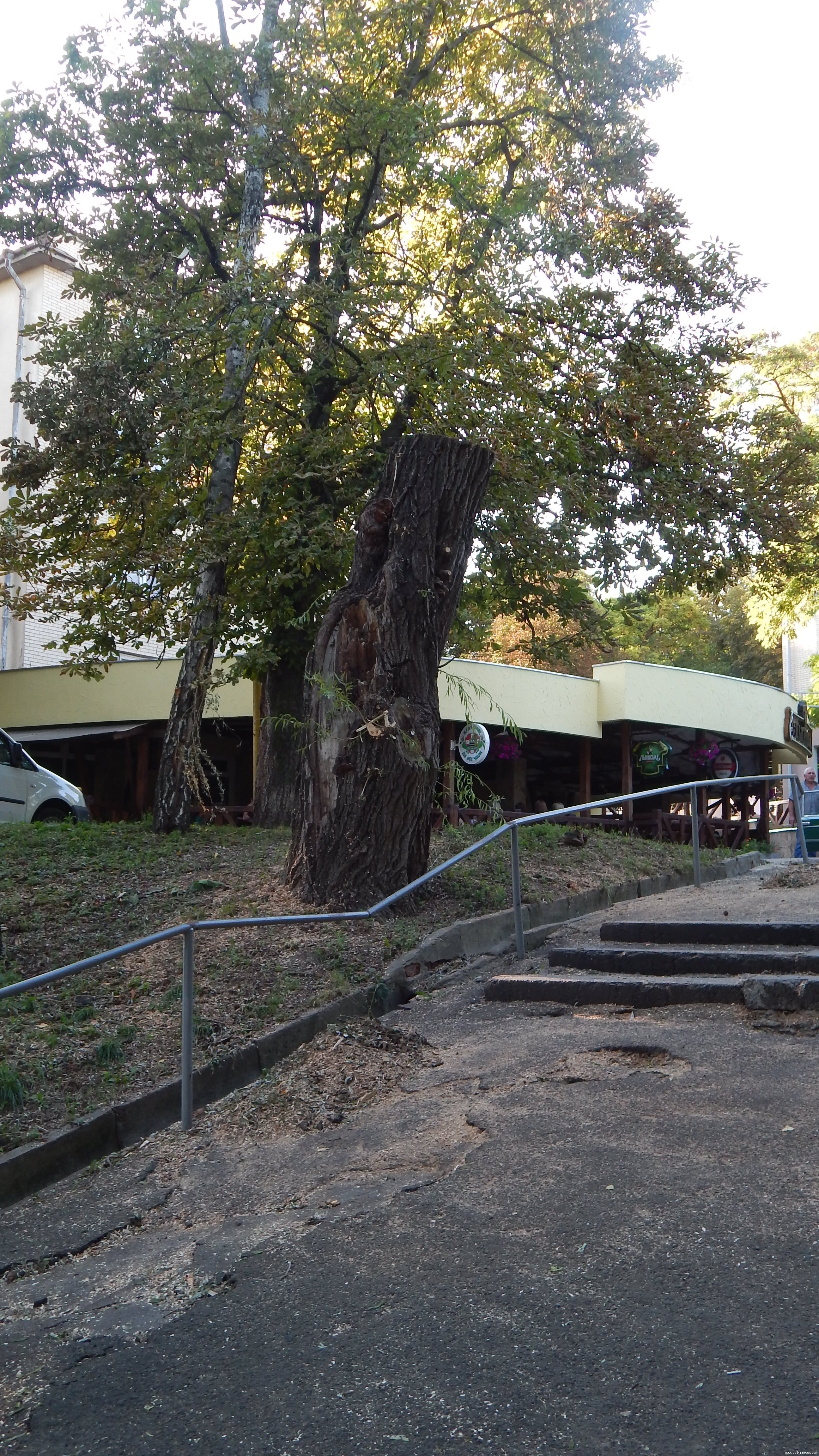 Думаю це дерево не в аварійному стані, але судячи з його вигину ризик його падіння мабуть все таки є!!!!!