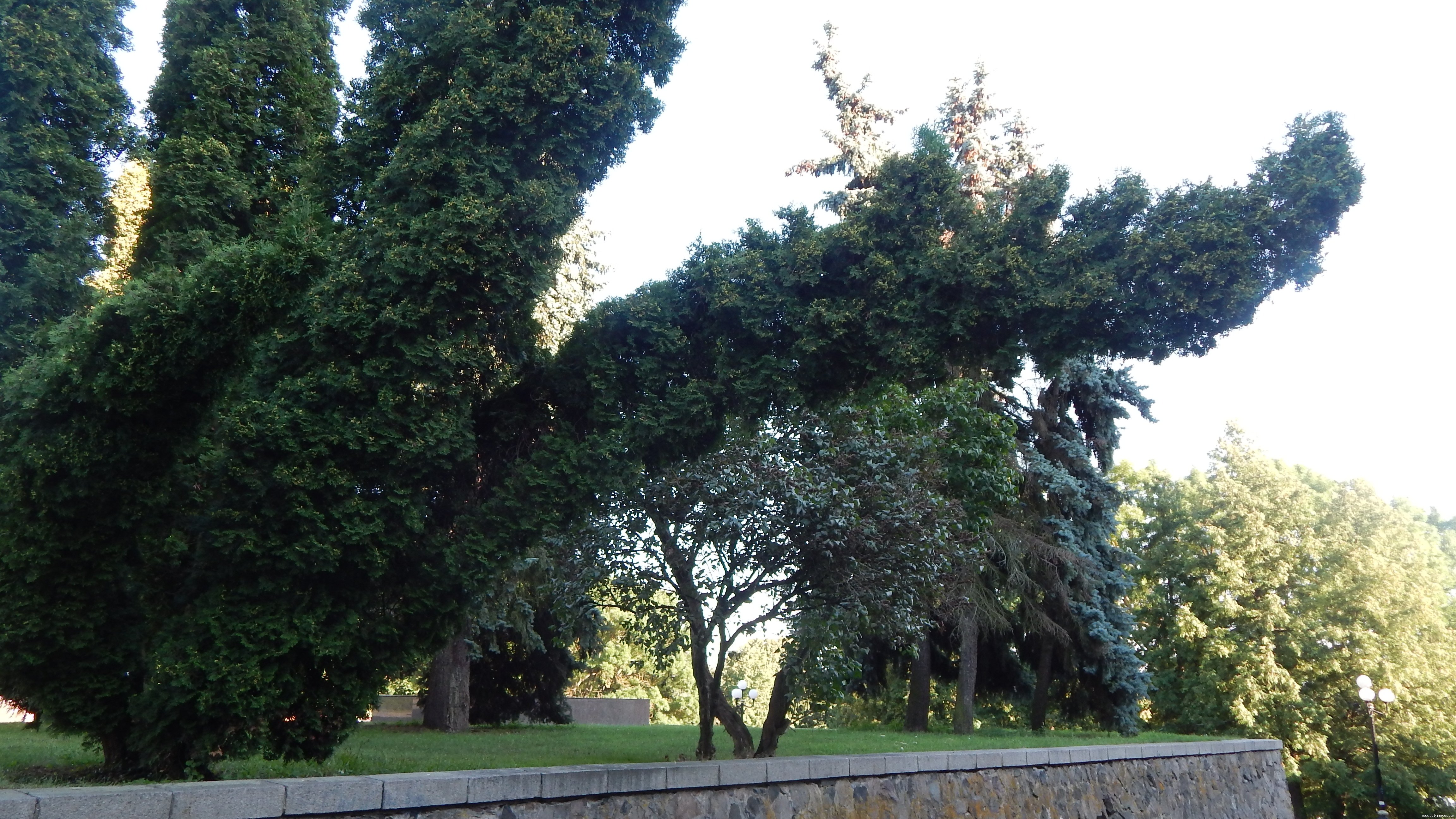 Явно простежується фалічний символізм зрубаного стовбура та похилених туй. Мовою художньої асоціації це значить. що мер - куйовий, причому куй вже схилився до долу))) Комсомолець рулить!!!!!