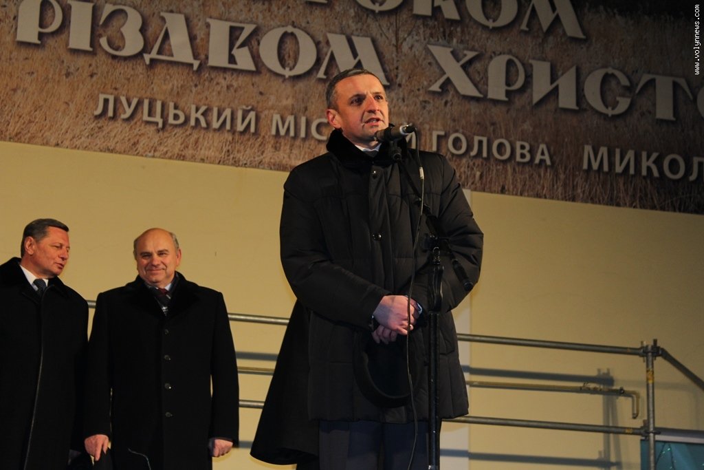 Своєю чергою, заступник голови Волинської ОДА Олександр Курилюк зичив зі сцени лучанам добра, радості, затишку та здоров’я у Новому році. «Щоби ми з добрими і чистими помислами зустріли різдвяні свята. Нехай збуваються усі мрії, плани і кожному з вас нехай Новий рік принесе успіх», - додав заступник губернатора.