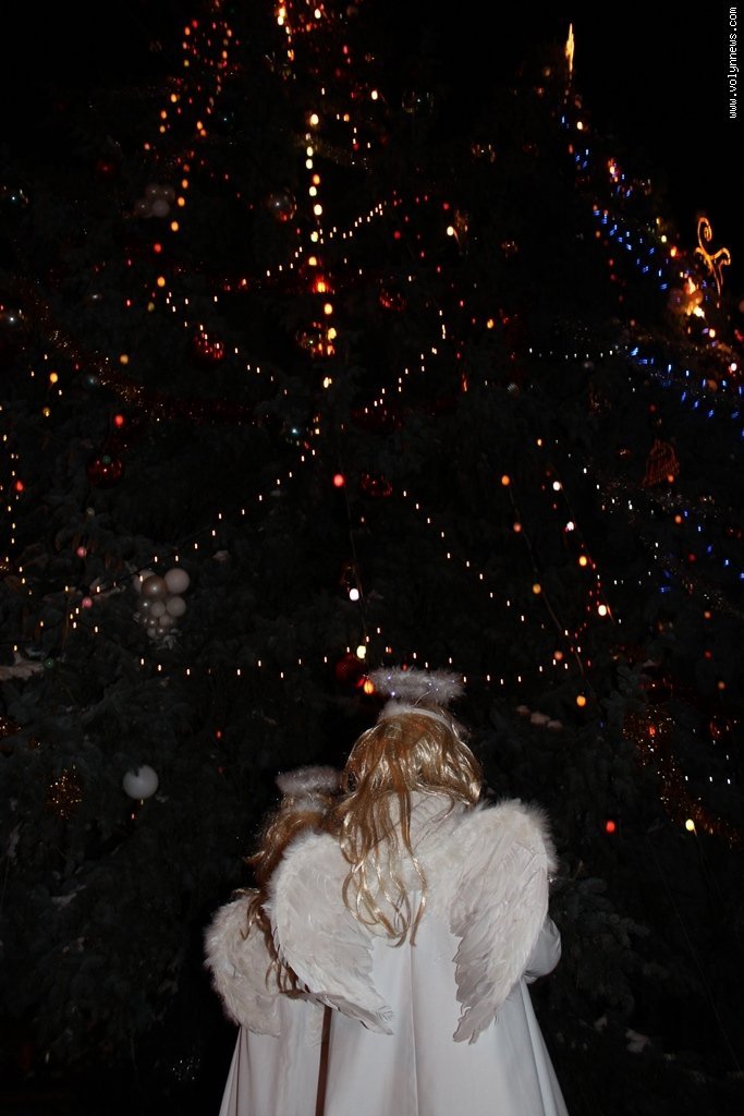 Малі лучанки, переодягнені у янголів, засвітили головну новорічну ялинку міста.