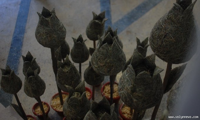 Зокрема, представлені вироби можна також придбати. Наприклад, трав’яні тюльпани, що зацікавили не одного відвідувача, вартують від 100 до 300 гривень - залежно від розміру.