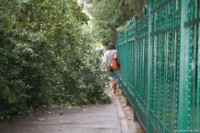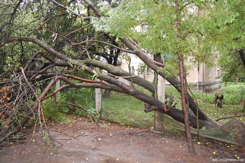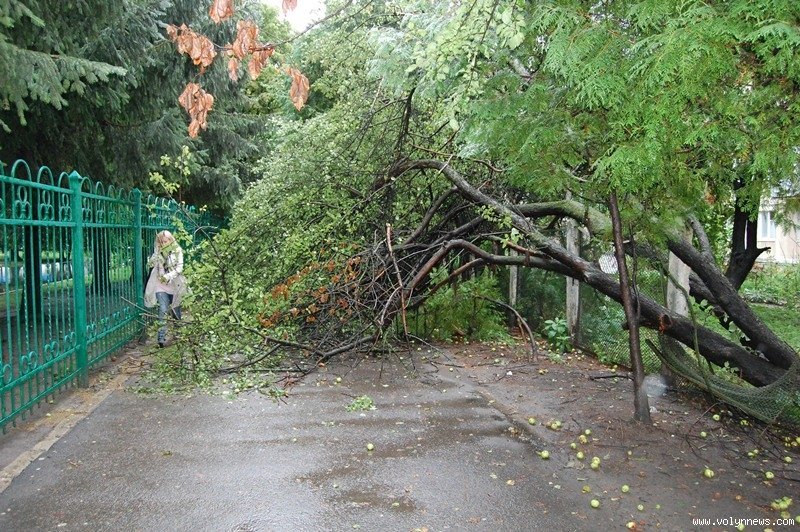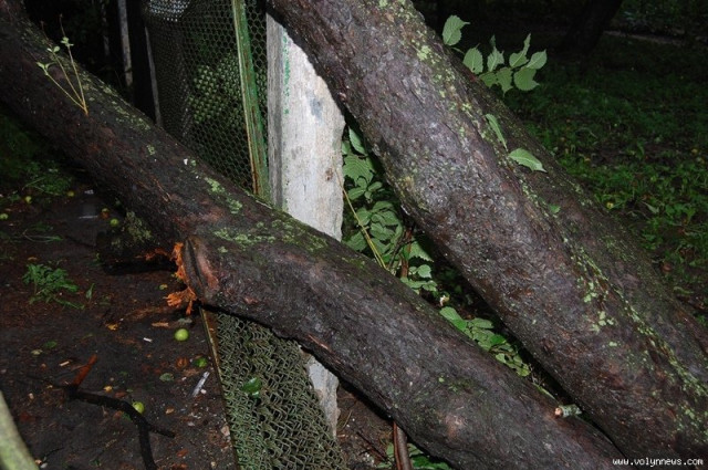 Одне з дерев, падаючи, пошкодило загорожу і перегородило шлях.