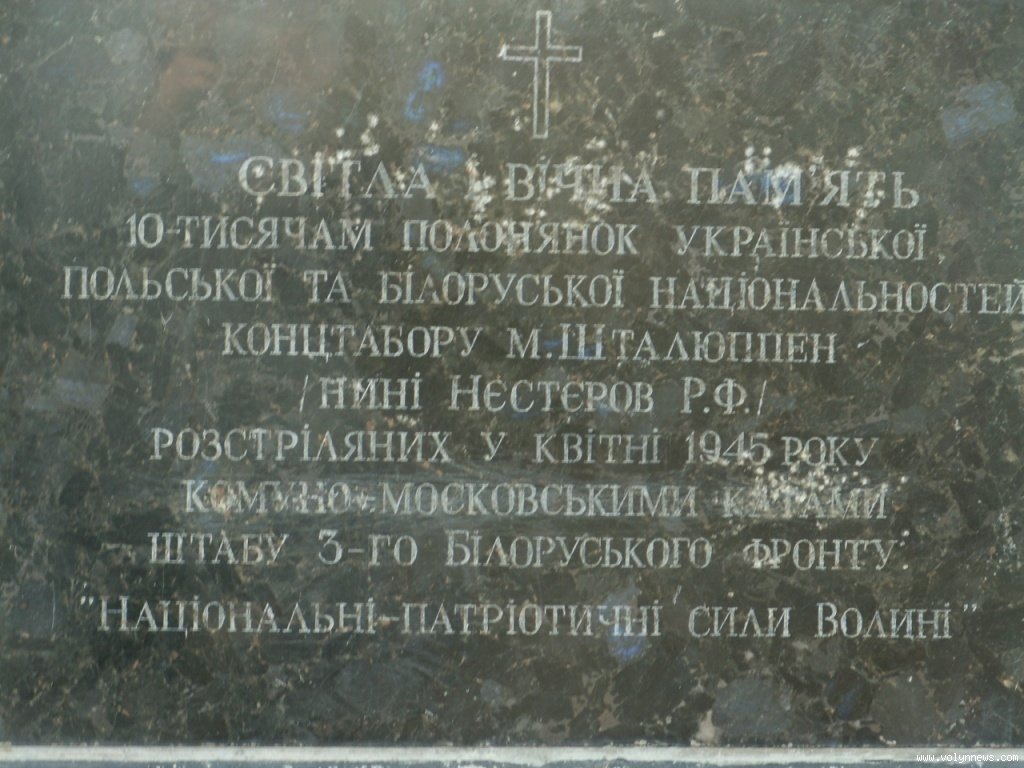 У квітні 1945 року 10 тисяч жінок української, польської та білоруської національності поверталися з німецького полону додому. Повернутися вони не змогли – їх за наказом штабу 3-го Білоруського фронту розстріляли поблизу міста Шталлюпенен у Східній Пруссії.