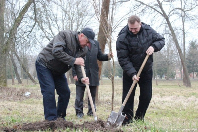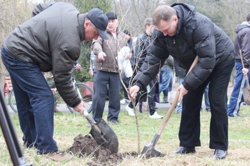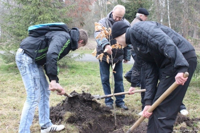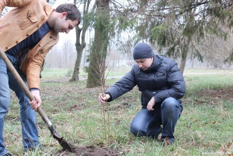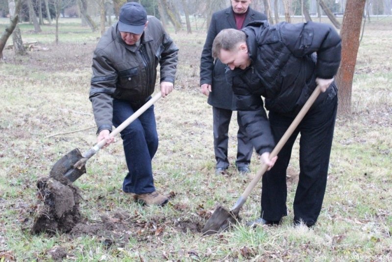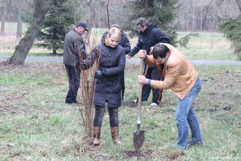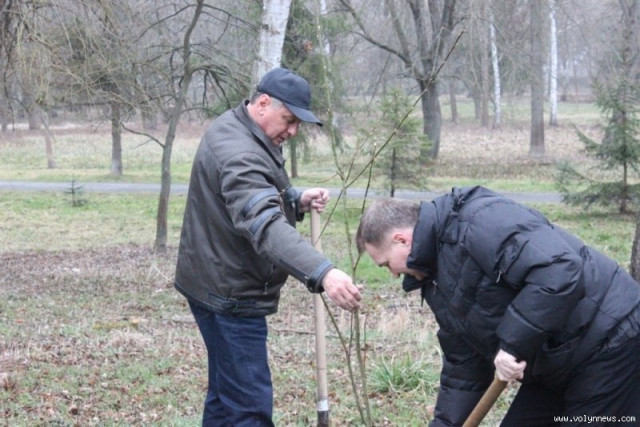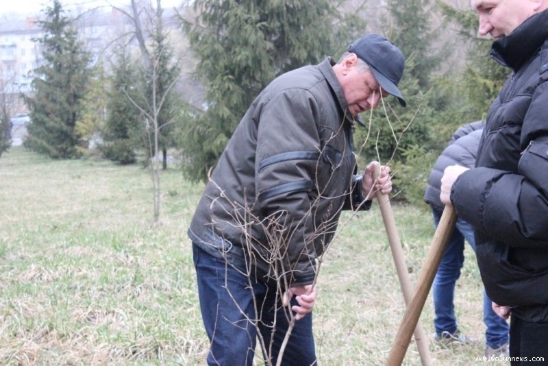 Так, мер разом із директором Луцького педагогічного коледжу Петром Бойчуком висадив чимало саджанців, серед них ‒ кілька кущів бузку.