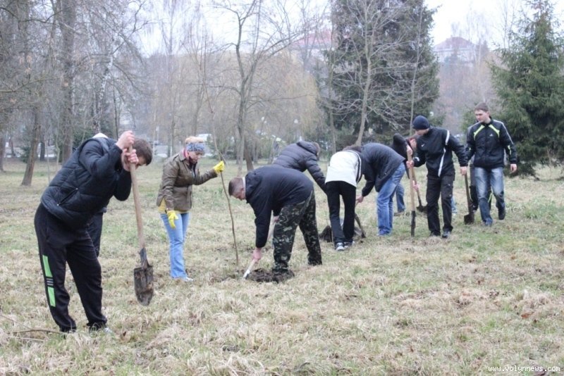 Майже півтисячі саджанців нових дерев та кущів висадили у центральному парку обласного центру Волині.