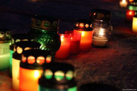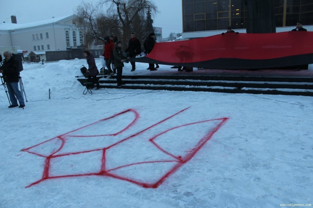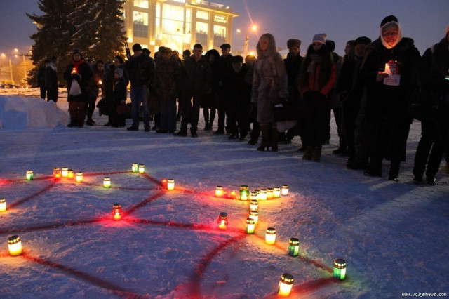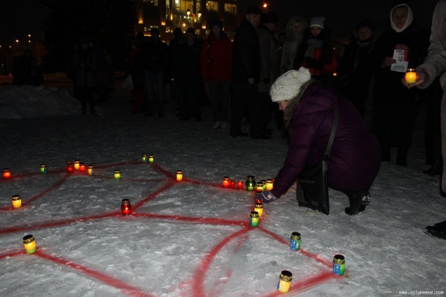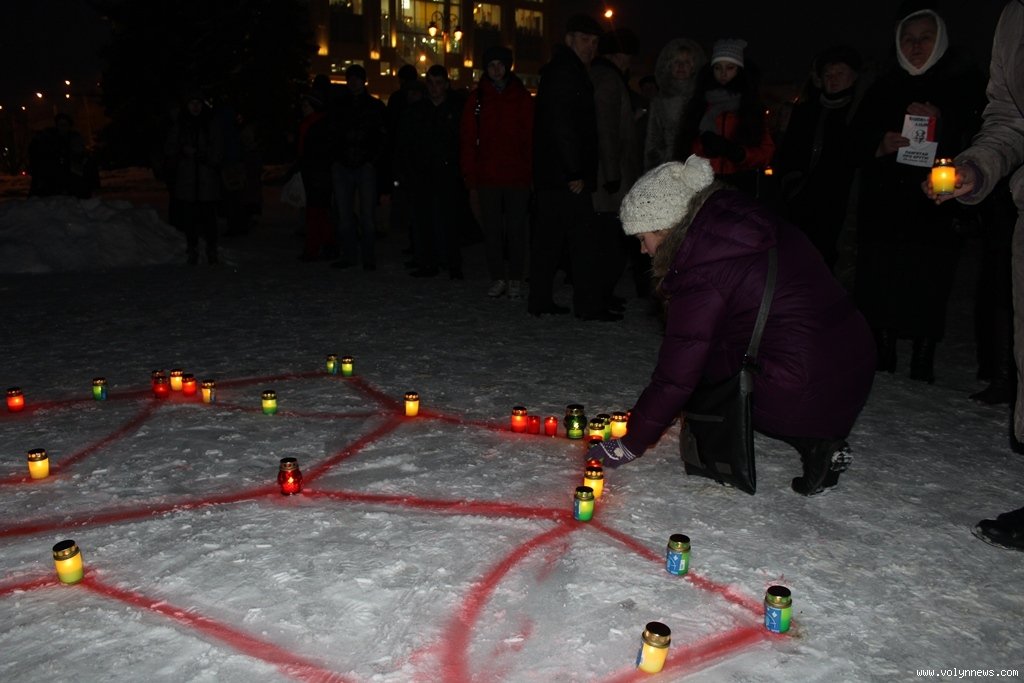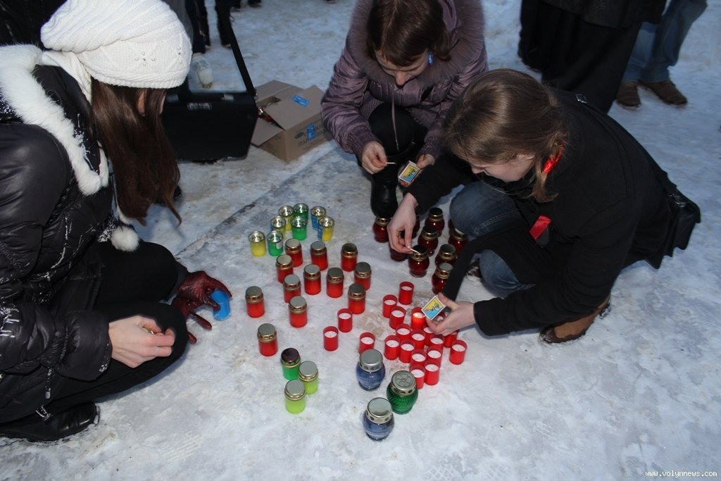 На завершення акції усі охочі змогли поставити лампадки на зображення Тризубу, який організатори намалювали на снігу.