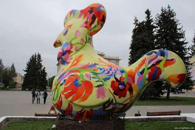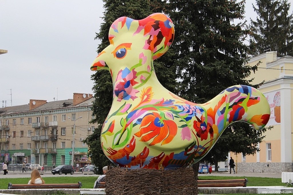 Скульптуру 80-кілограмової «диво-птахи» встановили на Театральному майдані Луцька.