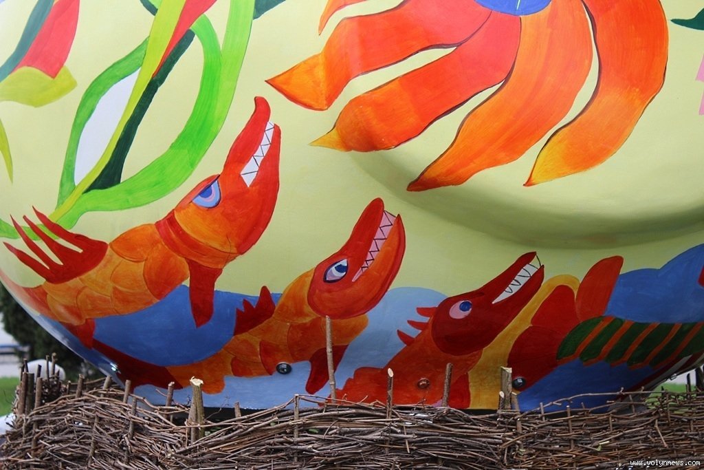 Фігура має форму традиційної іграшки-свистунця і висоту 3,5 метра. А прикрасив волинську «диво-птаху» старовинний український орнамент, який разом з іншими митцями наніс відомий луцький художник Сергій Корсай.
