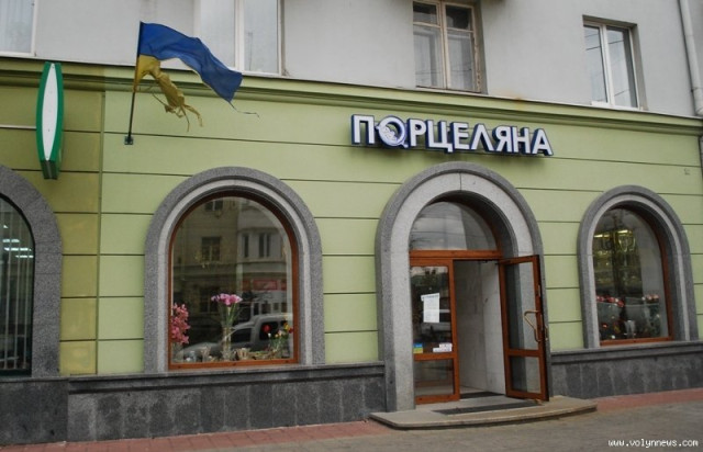 Розміщений він у настінному флагштоку на приміщенні магазину «Порцеляна» за адресою проспект Волі, 19.